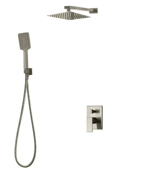 This shower system takes pure and simple geometric forms and composes them into an expression of modern luxury. Not only does it add contemporary style to your powder room ensemble with its clean-lined solid brass design and also adds unparalleled functionality. The rain head top is perfect for relaxation, while a handheld design lets you get the water right where you need it.