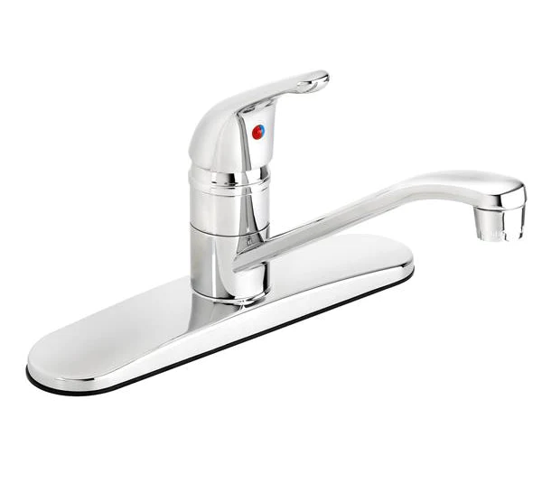 - 8-Inch centerset design for standard pre-drilled kitchen sink installations