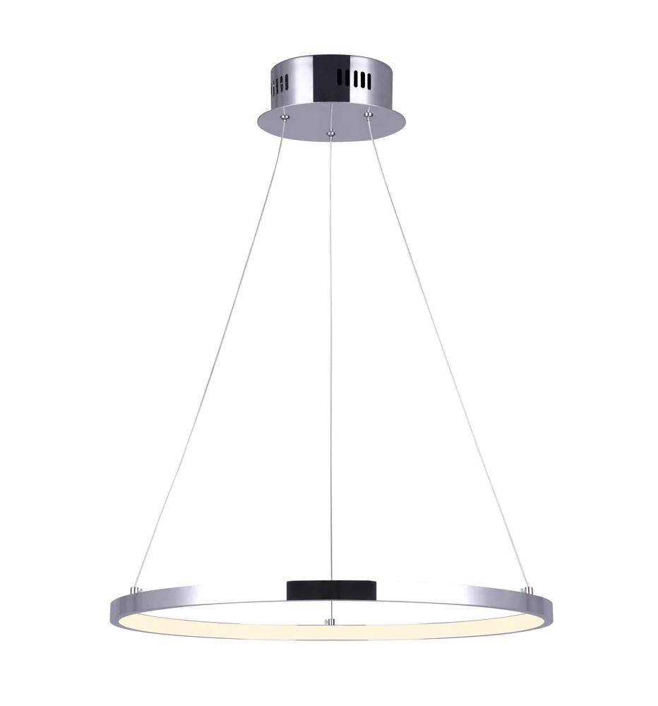 MIRRI, LCH207A24CH, LED Chandelier, chrome, bubble acrylic, 41W, DC, 3700 lumens, 80 CRI, 3000K, 36,000hrs, dimmable. 23 1/2″ W x 7″ – 55″ H