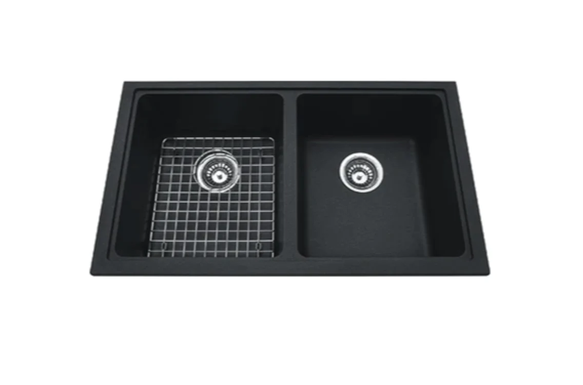 Model KGD1U-8ON is a double (two equal size) bowl undermount sink, cast from colour Granite composite. Sink is backed with a lifetime warranty.