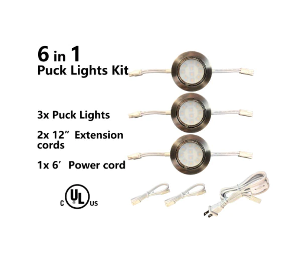 - Led Under Cabinet Lighting Kit Puck Light – 3 Pack, Brushed Nickel (3000K, 6000K)