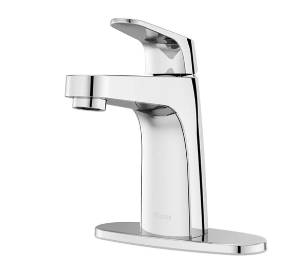 The Pfister® faucet presents a versatile design that will enhance any bathroom décor. The smooth and sleek lever handle ensures quick responsive control of water temperature. The 4” center set configuration faucet is easy to install in a 1-hole sink or mounted with a deck plate for 3-hole installation. The faucet is sold with the mounting plate, a push and seal pop up drain. This product is backed by a limited lifetime warranty.