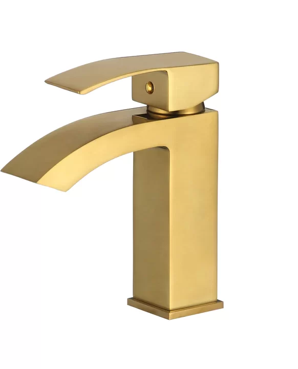 Tags: Bathroom Faucet, Brushed Gold, Chrome, Curved, One-Handle, One-piece, Plaza