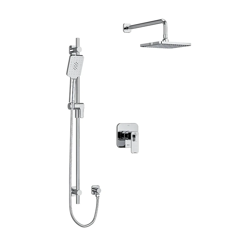 - Type T/P (thermostatic/pressure balance) ½” coaxial 2-way system with hand shower and shower head