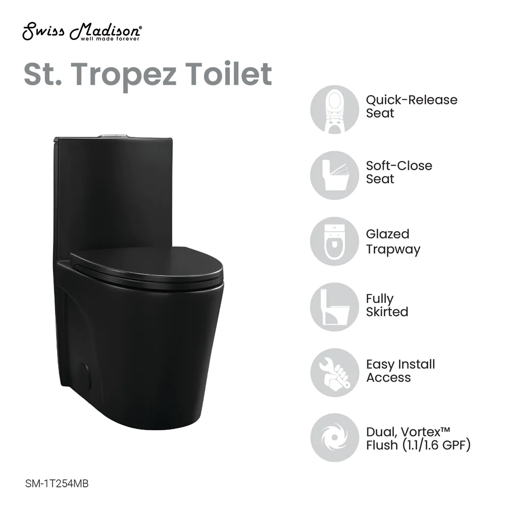 Tags: Dual-Flush, Matte Black, One-piece, SM-1T254MB, St. Tropez, Swiss Madison